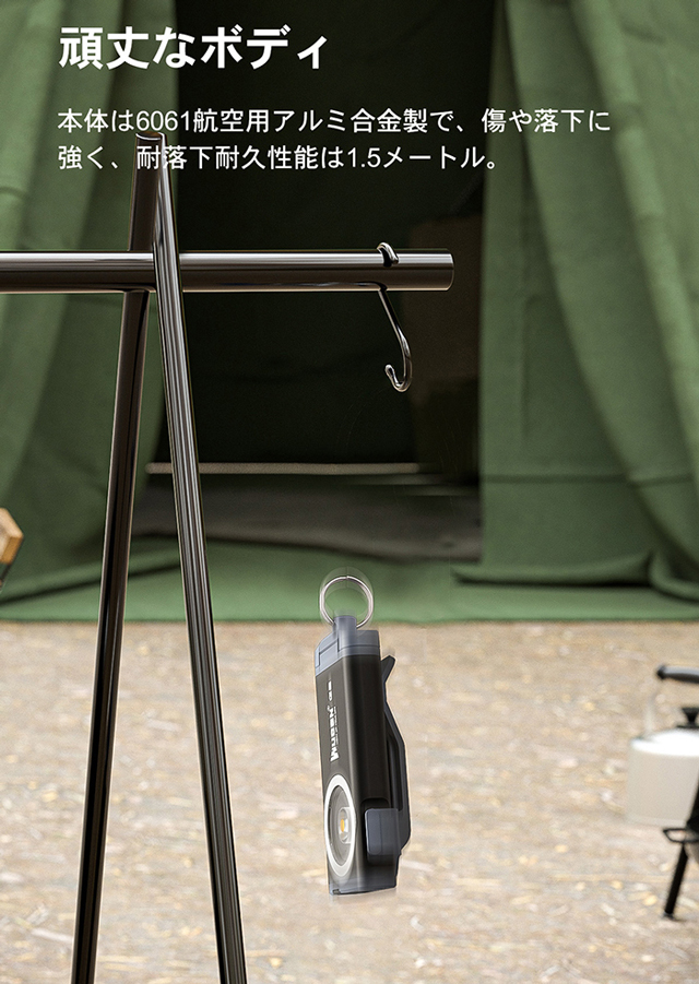 ・バックホールドクリップにより素早く帽子やベルトに装着可能