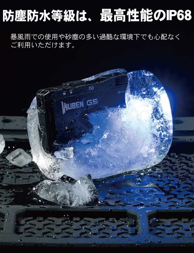 | 明るさ最大 | 白色光:400ルーメン | 防塵・防水規格 | IP68 |