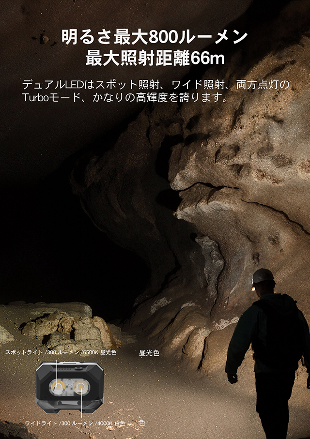 | 明るさ最大 | 800ルーメン | 防塵・防水規格 | IP68 |