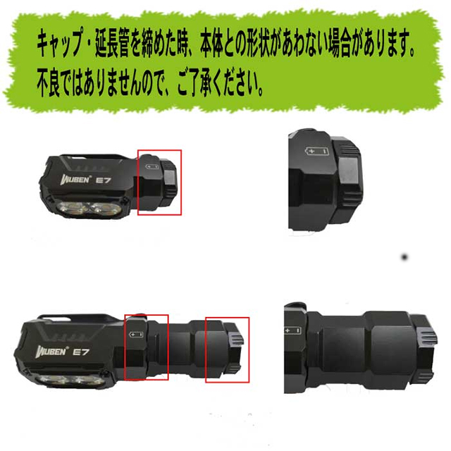 付属品 | ・E7/E7-GR 本体 × 1 ・Type-C充電ケーブル × 1 ・ABJ1100C (18350リチウムイオン充電池) × 1 ・ストラップ × 1 ・防水パッキン × 2 ・取扱説明書 × 1 |