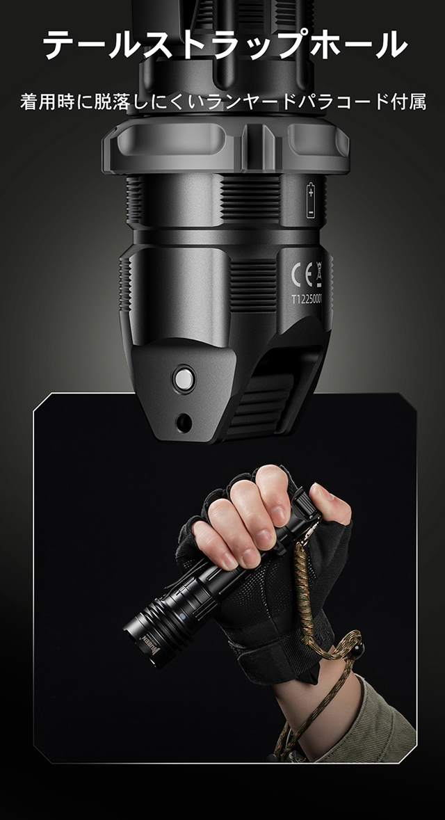 T1本体 × 1 ABE3100C(18650リチウムイオン充電池) × 1 ランヤードパラコード × 1 防水パッキン(スペア) × 2 Type-C充電ケーブル × 1 取扱説明書 × 1 |