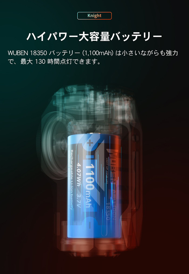 使用電源 | 18350リチウムイオン充電池 |