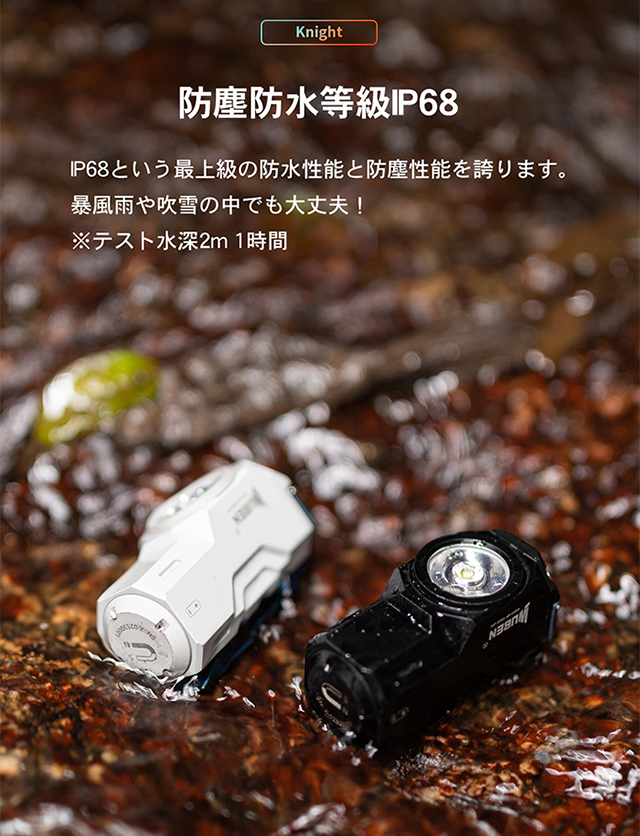 | 充電 | Type-C充電式 | 最大照射距離 | ブラック:OSRAM P9: 125 m ライトグレー:日亜519AT: 102 m |
